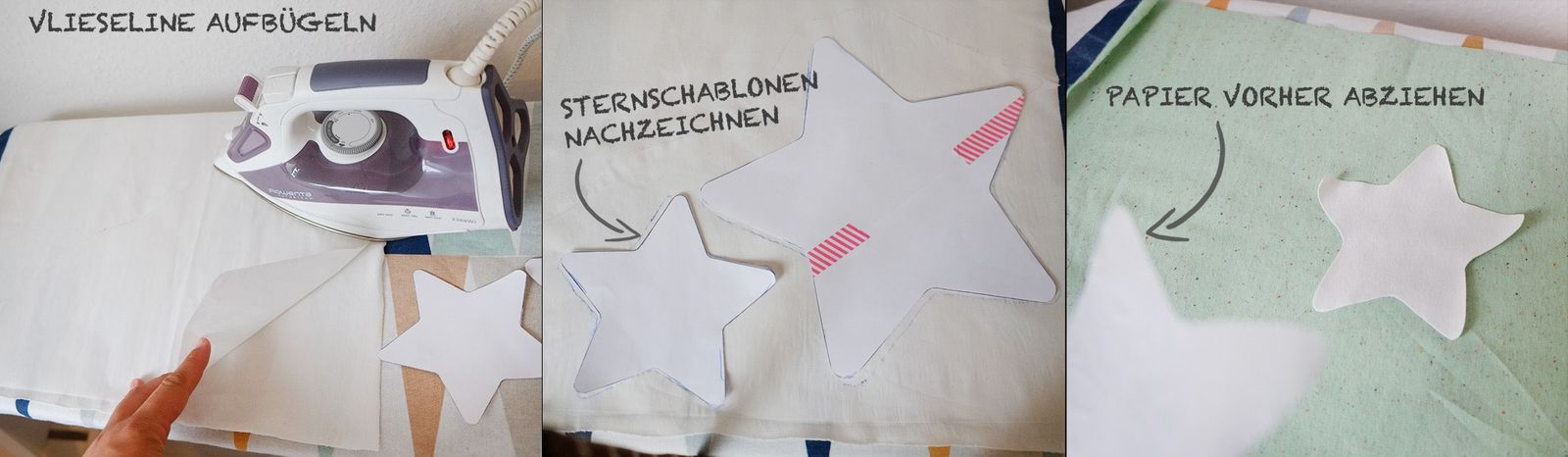 2. Die Sterne auf dem Papier der Vlieseline nachzeichnen.