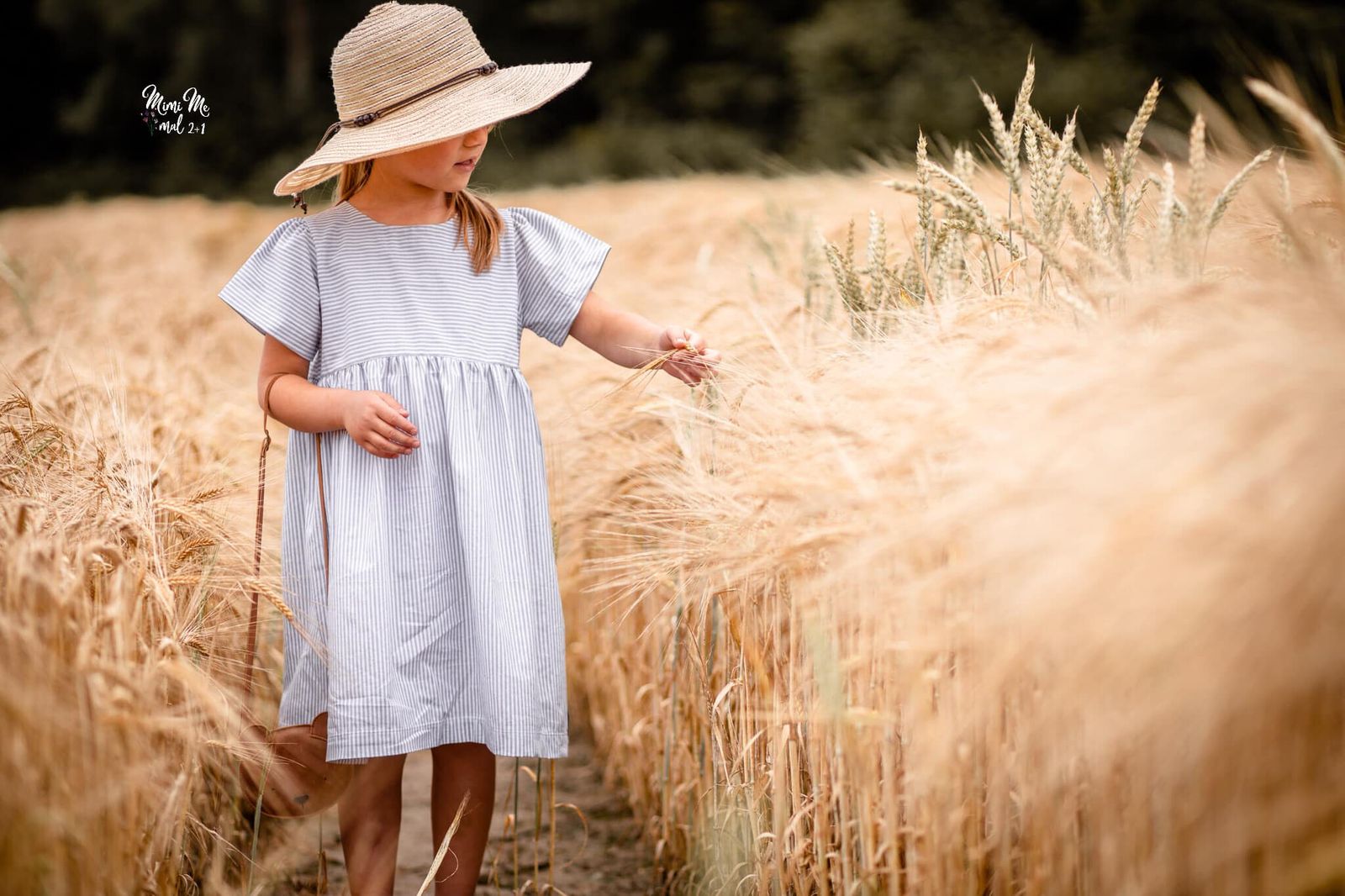 Sommerkleid Juna ist ein Basickleid für Webware - luftig, etwas weiter geschnitten und mit drei verschiedenen Ärmel-Varianten. Man kann es ganz ohne nähen, mit Flügelärmeln oder normalen Ärmeln, die etwas gepufft sind. Im E-Book sind - gerade für die Webware-Neulinge - auch viele Tipps und Infos zur richtigen Stoffwahl und zu den passenden Maschinen, Nadeln und Stichen aufgeführt.