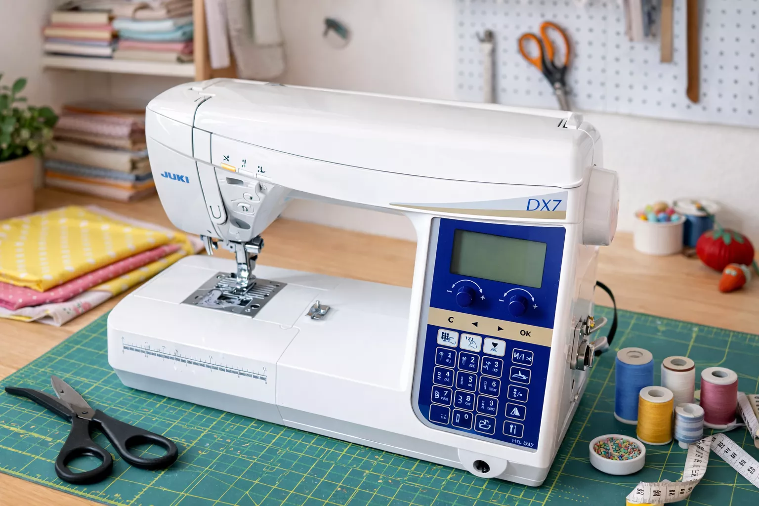 Die computergesteuerte Nähmaschine gehört zur Oberklasse der Juki-Haushaltsmaschinen. Sie verbindet Technik aus dem Industriebereich mit einer sehr komfortablen Bedienung – ideal für alle, die viel und gerne Zuhause nähen.