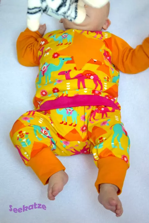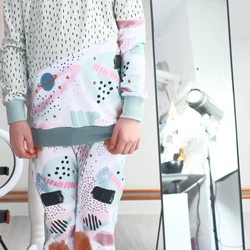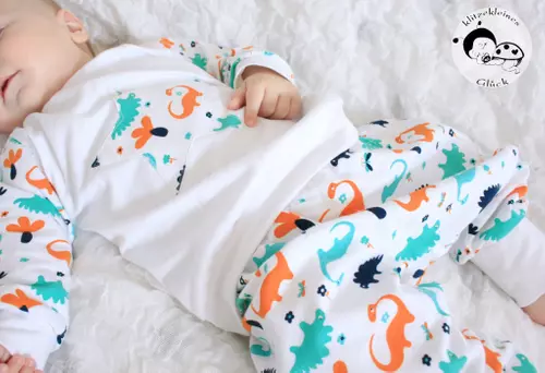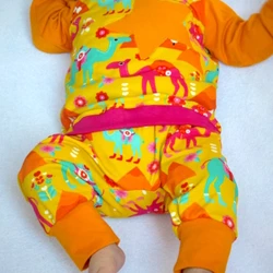 Die Schlafanzughose ist bei den kleinen Größen angelehnt an die Pumphose 1.0. Bei den großen Größen (128 - 164) diente die Pumphose 2.0 als Vorbild und hat somit nur zwei Seitennähte. Sie ist etwas schmaler geschnitten als die Pumphose 2.0, da sie hauptsächlich für Jersey ausgelegt ist.