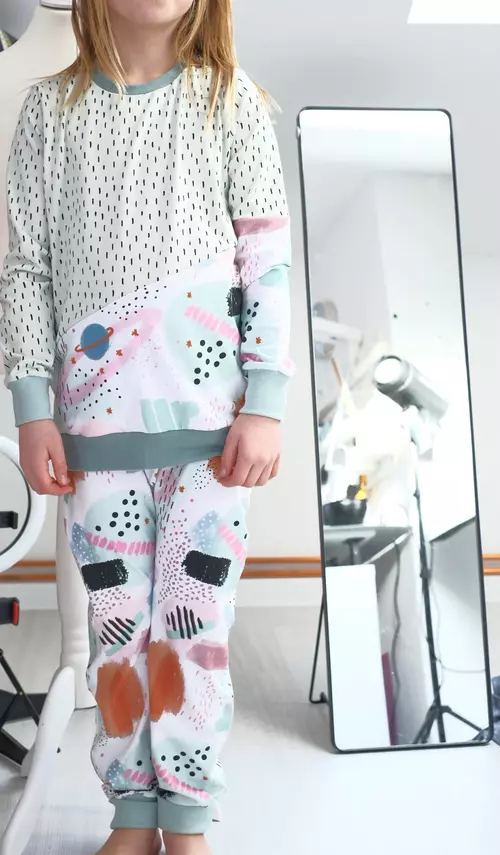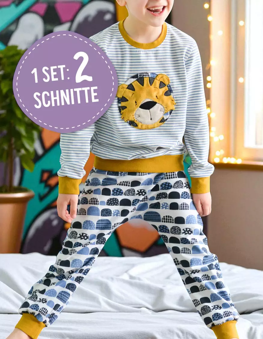 Der Lybstes Schlafanzug ist für Jungs und Mädchen und für jede Alterstufe gedacht! Er kann wunderbar als Kuschelanzug aus Jersey oder Sommersweat genäht werden. Er ist locker geschnitten und das Oberteil etwas länger als der normale Sweater, damit alles schön warm bleibt.