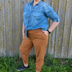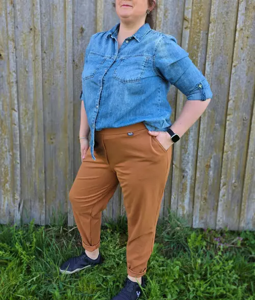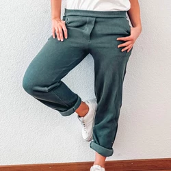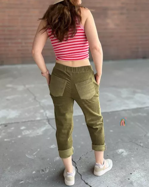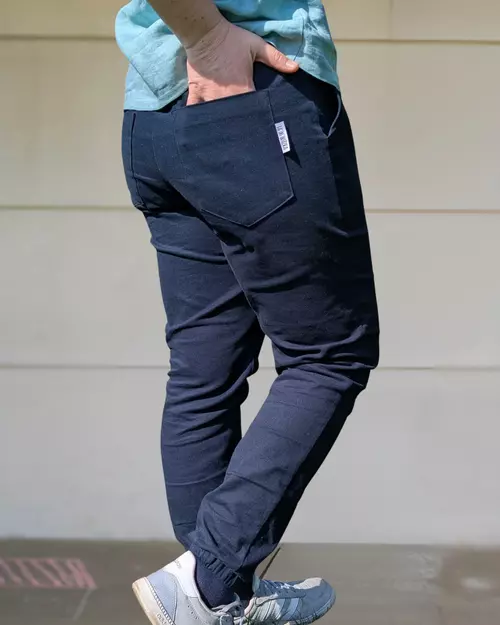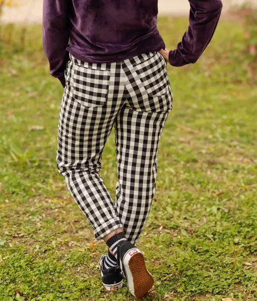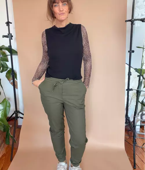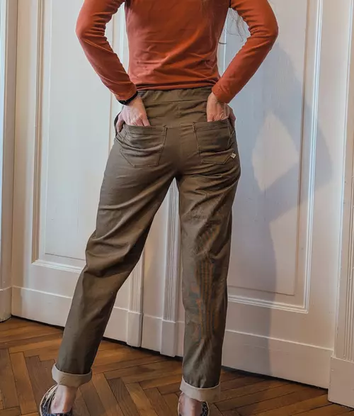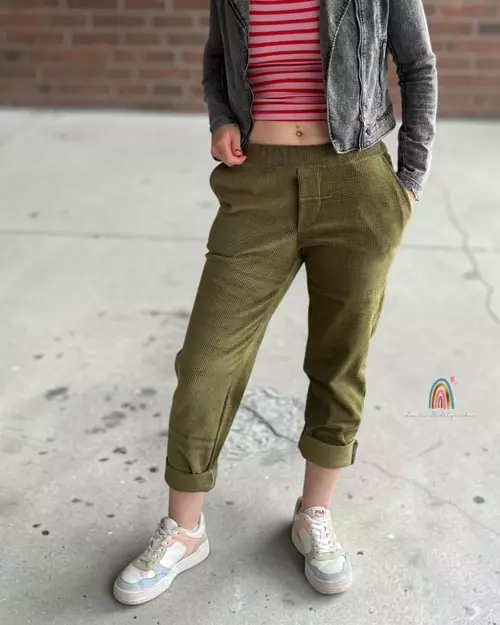Eine Hose, die lässig aussieht, bequem sitzt und in die du ganz einfach reinschlüpfenn kannst! Der Schnitt ist für dehnbare Stoffe gemacht und bietet dir gleich zwei coole Styles: Mit Chino-typischem Hochkrempel-Look oder im Joggerstyle mit Beinbündchen.
