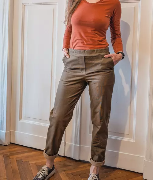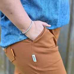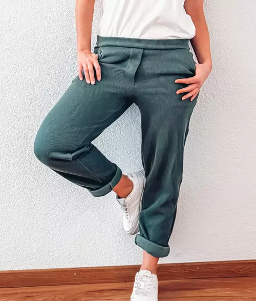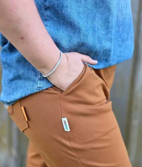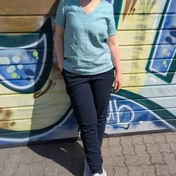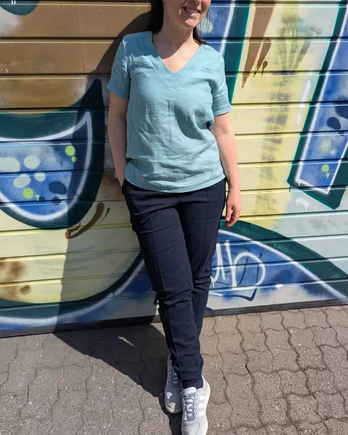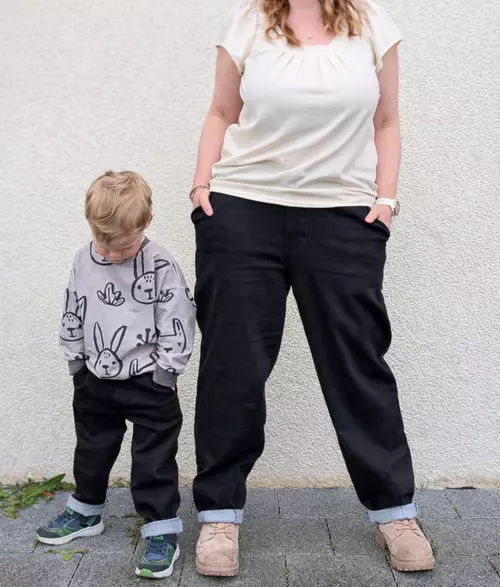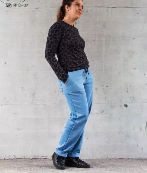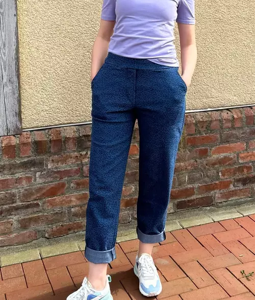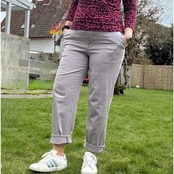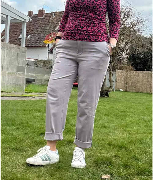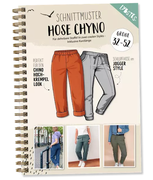 Unsere Chyno ist super vielseitig. Je nach Stoff wirkt der Schnitt immer wieder anders: Mit Stretch-Twill oder Gabardine nähst du dir eine klassische Chino, Jeans mit Elasthan oder Stretch-Kord eignen sich perfekt für einen lässigen Hochkrempel-Look. Für einen sportlichen Style sind auch Sweat oder Scubastoffe ideal und geben der Hose einen coolen Jogger-Charakter.