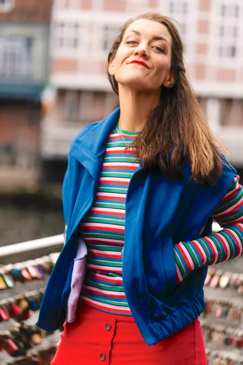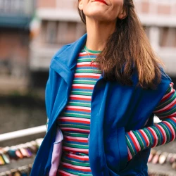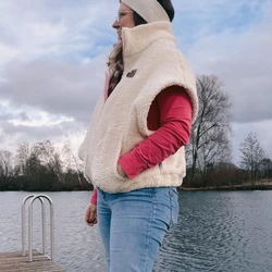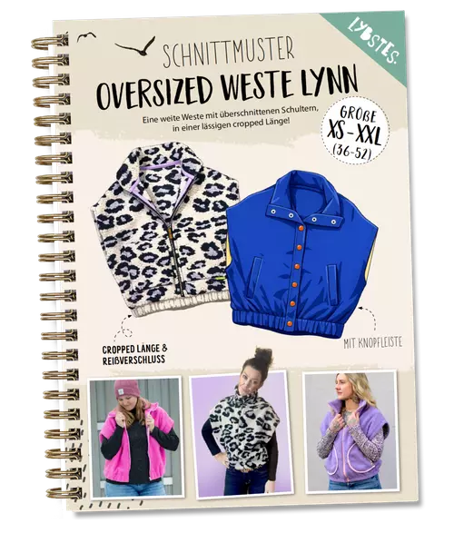 Die Weste „Lynn“ ist dein perfekter Begleiter für die Frühlingszeit! Mit den überschnittenen Schultern und der cropped Länge macht die Weste jedes Outfit zu einem Look. Sie ist ideal zum Layern über Longsleeves, Sweater oder Strick. Auch für NähanfängerInnen absolut machbar.