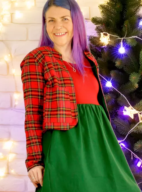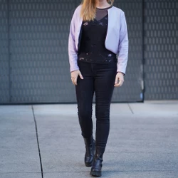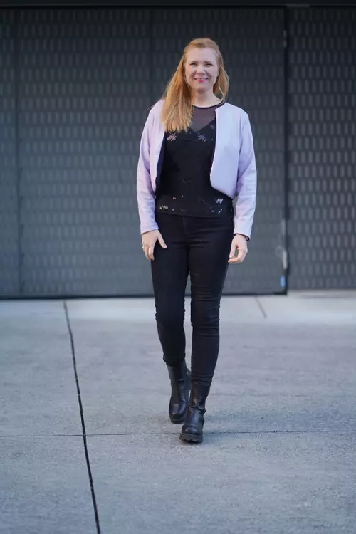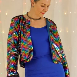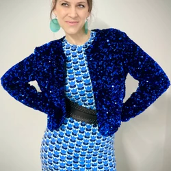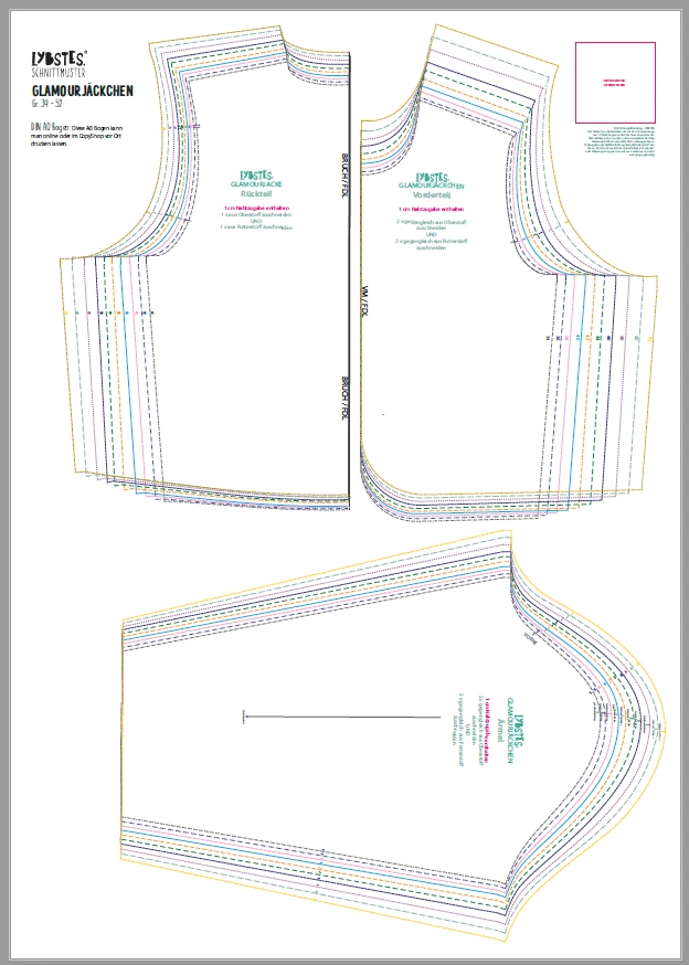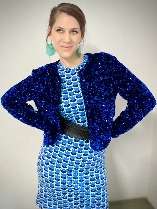 Ein einfaches Jäckchen, das gefüttert wird und ohne Reißverschluss und Bündchen auskommt. Es ist das ideale Partyjäckchen und einfach ratzfatz genäht! Da es absolut anfängerInnentauglich sein soll, hat die Jacke keine Belege. Futter- und Außenjacke sind also identisch.
