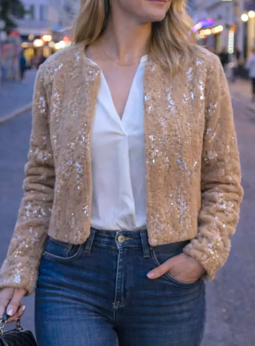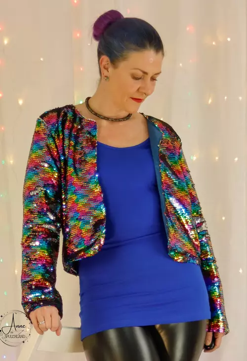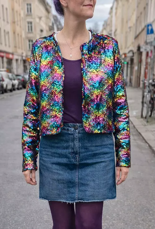 perfekt. Für den Glamourlook empfehlen wir Paillettenstoffe für die Außenjacke