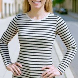 Das Shirt ist für Jersey ausgelegt. Es fällt eher eng aus und ist entweder für den Sommer ein tolles Basic-Oberteil und für den Winter eher ein enges, warmes Unterhemd (z.B. aus Wollfrottee genäht).