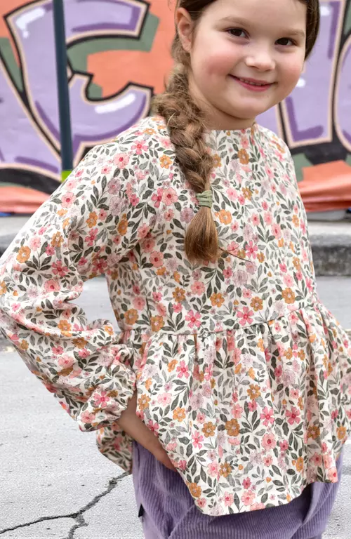 Das Volant-Raglankleid ist ein weites Kleid mit langen Raglanärmeln, dass ideal für den Herbst, Winter und Frühling ist! Es kann aus Sommersweat/Sweat genäht werden, aus einem coolen Materialmix (oben Sweat unten Jeans oder Kord) oder auch komplett aus Webware. Perfekt für ein schickes Festtagskleid, z.B. aus Leinen oder Musselin! Mit der durchgehenden Knopfleiste am Vorderteil kann man das Kleid auch aus Webware auf jeden Fall gut an- und ausziehen.