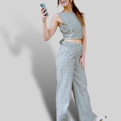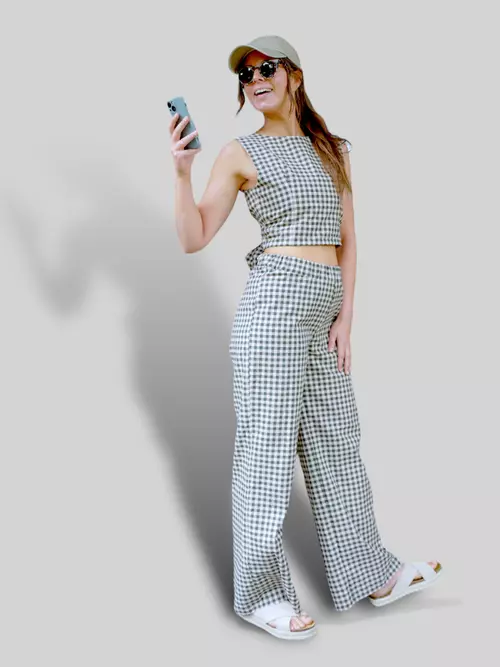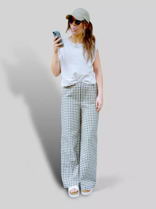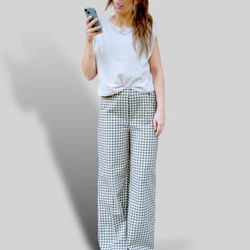 Die Palazzohose ist eine lässige Hose mit geradem, weitem Bein. Das Schnittmuster ist für Webware, bzw. für nicht dehnbare Stoffe entworfen worden und somit ein echter Allrounder für jede Jahreszeit. Im Sommer lässt sie sich wunderbar aus leichten Viskose- oder Baumwollstoffen tragen, während sie im Herbst aus festeren Stoffen wie Kord oder Twill genauso genäht werden kann.