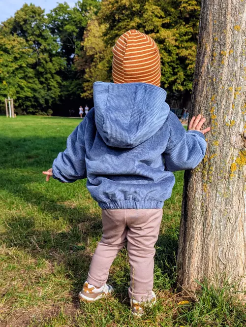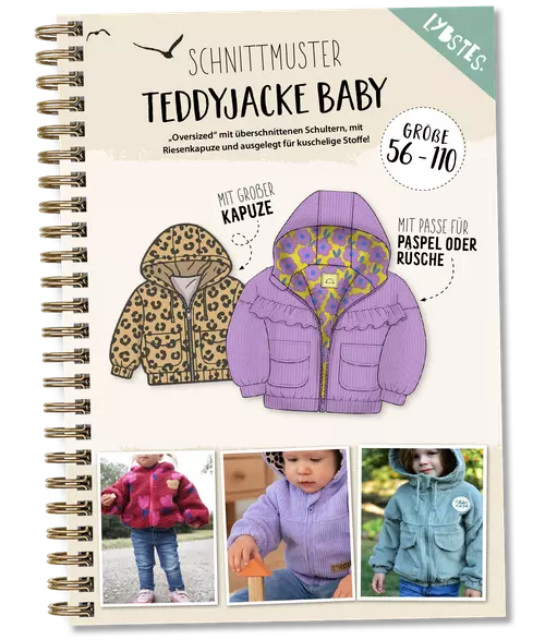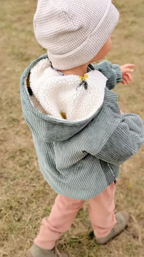 Der Herbst ist da und es müssen warme Jacken her! Näht euren Kleinsten die Teddyjacke mit der coolen Riesenkapuze so richtig schön kuschelig. Vielleicht außen mit Kord und innen mit Teddystoff? Oder komplett aus Teddy?!