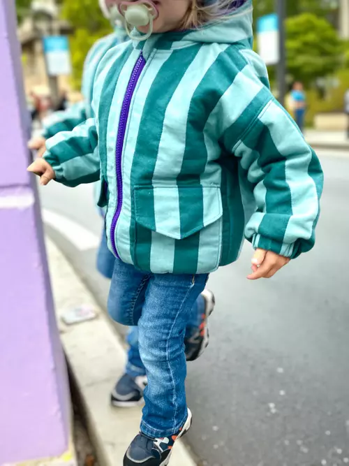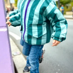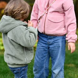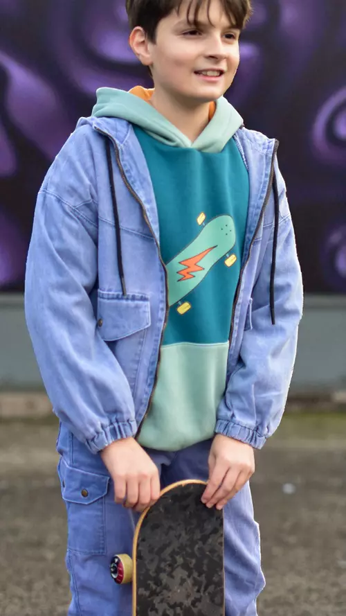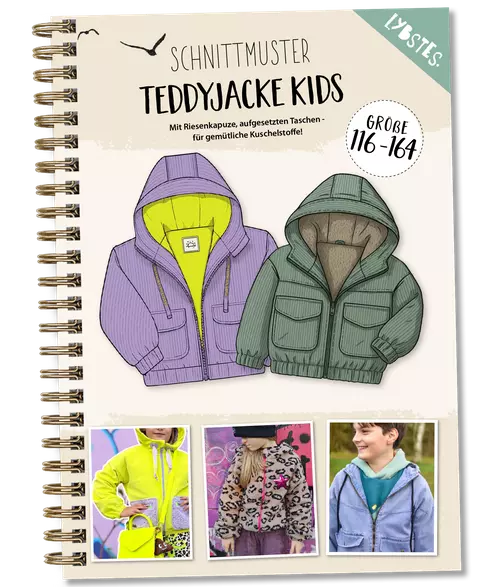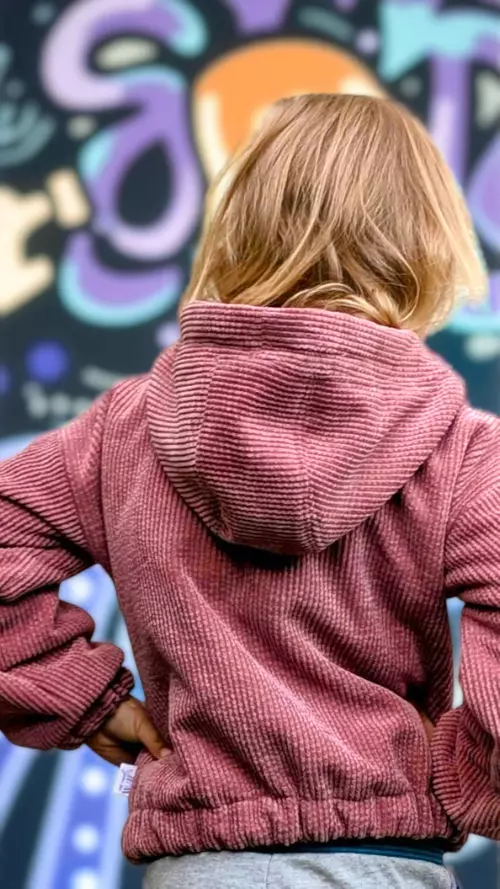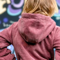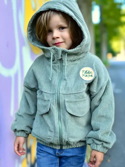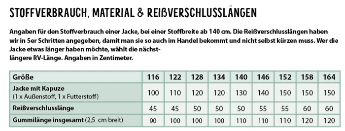 Der Herbst ist da und es müssen warme Jacken her! Näht euch diese Jacke mit der coolen Riesenkapuze so richtig schön kuschelig. Vielleicht außen mit Kord und innen mit Teddystoff? Unsere Lieblingskombi! Aber auch viele andere Stoffe sind denkbar. Mit den aufgesetzten Taschen kann man schöne Highlights zaubern und die Kids glücklich machen. Da passen einige Kastanien rein!