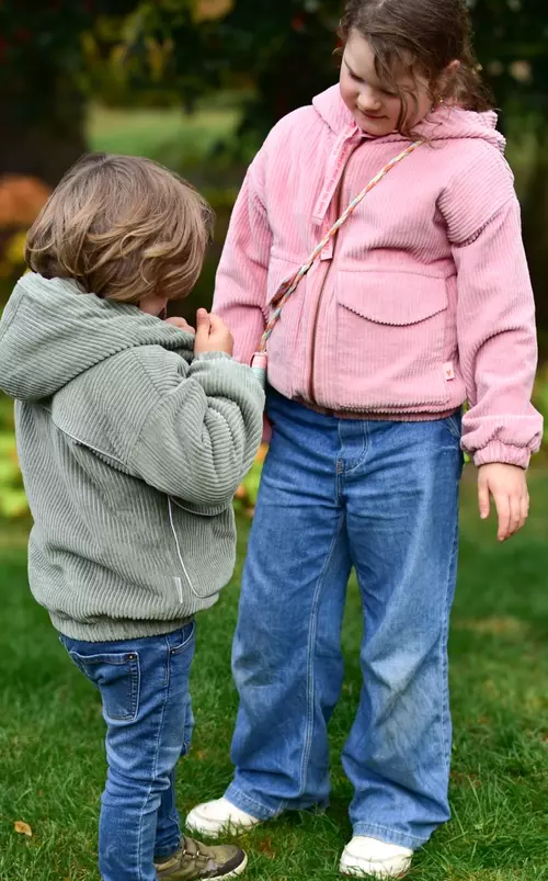Außen Kord und innen Teddystoff ist gerade unsere Lieblingskombi! Aber auch alle anderen Stoffe sind denkbar. Jeans, Flanell, Fleece... nur, wenn Sweat oder ähnlich dehnbare Stoffe gewählt werden, muss man mit Vlies verstärken. Die doubleface Kord/Teddystoffe können auch vernäht werden - dafür haben wir die Anleitung für die ungefütterte Jacke mit reingenommen.